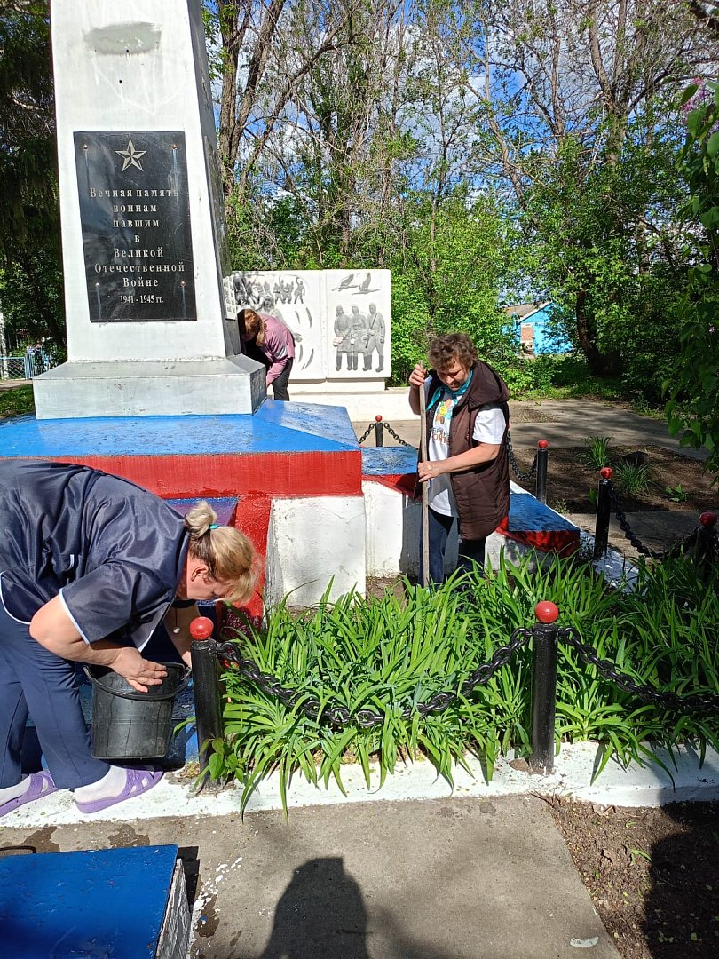 В преддверии великого праздника Дня Победы «серебряные» волонтеры совместно с социальными работниками центра социального обслуживания населения Ершовского района провели акцию «Аллея добра». Акция была направлена на благоустройство территории у памятника погибшим в годы Великой Отечественной войны землякам в п. Учебный.