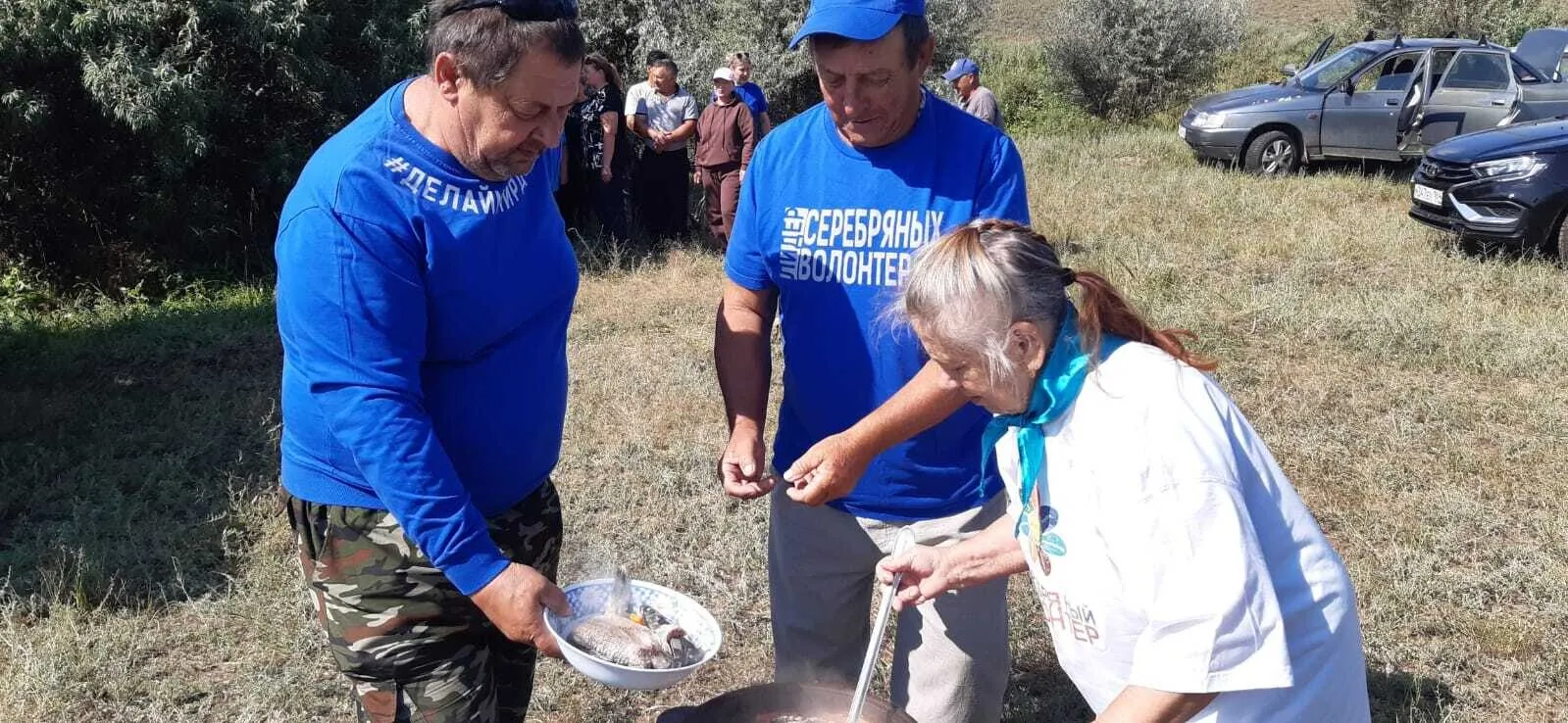 «Серебряные» волонтеры приготовили чай из летнего разнотравья, с собой привезли зелень с домашнего огорода, а сваренная на костре уха стала главным угощением. Получатели услуг и «серебряные» волонтеры делятся впечатлениями: «Порой на крючок попадаются весьма приличные экземпляры. Мелочь, как водится, отпускаем – пусть подрастет, а что покрупнее — в уху. Уха просто прелесть, объедение! Рыбалка на свежем воздухе – отличный отдых. Так что добро пожаловать на водоемы, места всем хватит».
