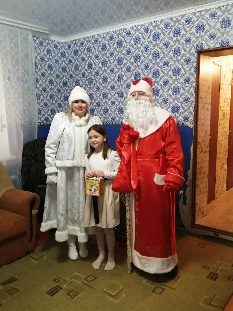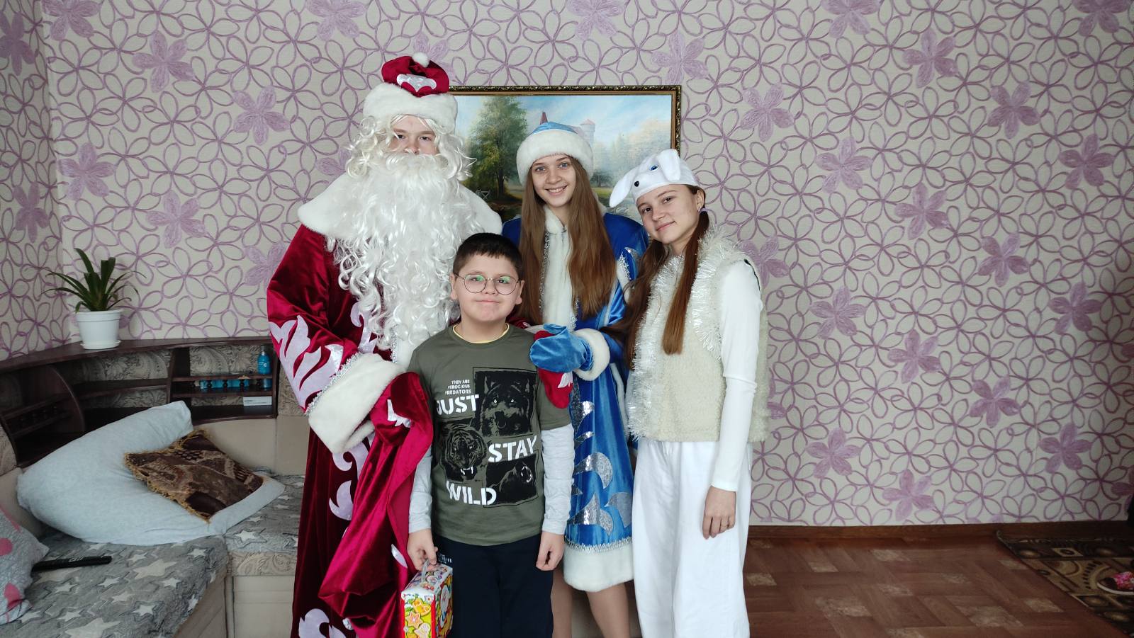 В рамках акции #МЫ ВМЕСТЕ в дома семей военнослужащих, принимающих участие в специальной военной операции, в сопровождении волонтеров из МОУ СОШ № 2 пришли Дед Мороз и Снегурочка. Они поздравили детей военных с Новым годом и вручили им подарки от спонсоров, в роли которых выступил коллектив ООО «ННК-Саратовнефтегаздобыча».