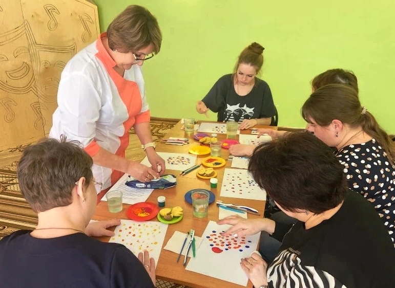 В Ершовском реабилитационном центре на заседании клуба для родителей «Позитивное родительство» осваивали необычные техники рисования