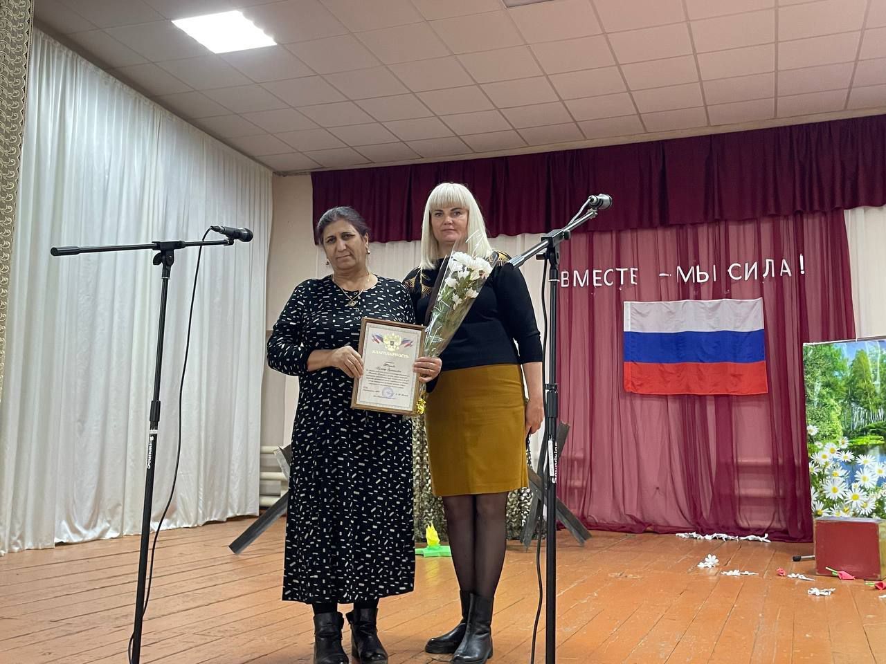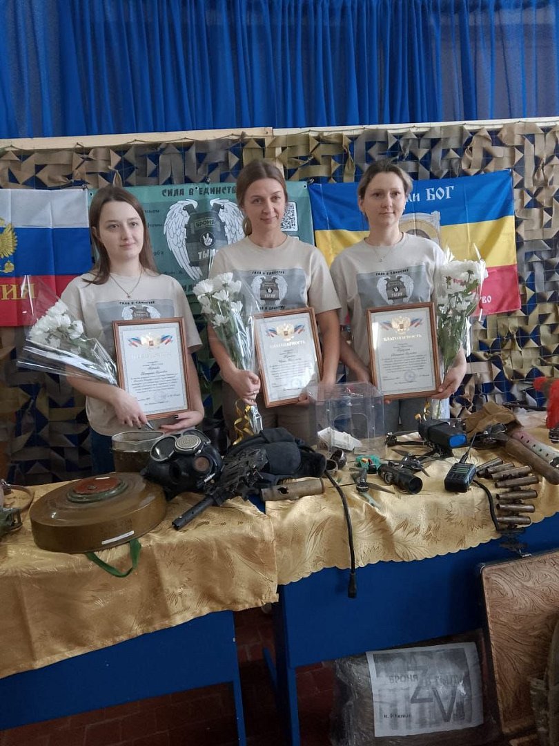 С приветственным словом к участникам мероприятия обратились глава Перекопновского МО Елена Писарева и вручила благодарности волонтерам общественного объединения «Броня в тылу» Ирине Кузьминой, Екатерине Горбулиной, Екатерине Левченко. Также были награждены женщины, плетущие маскировочные сети в Перекопновском СДК: Л.Измайлова, А.Лобачева, Б.Шадьярова, Л.Иванина, Г.Юсупова, Н.Жулидова, Б.Казиханова.