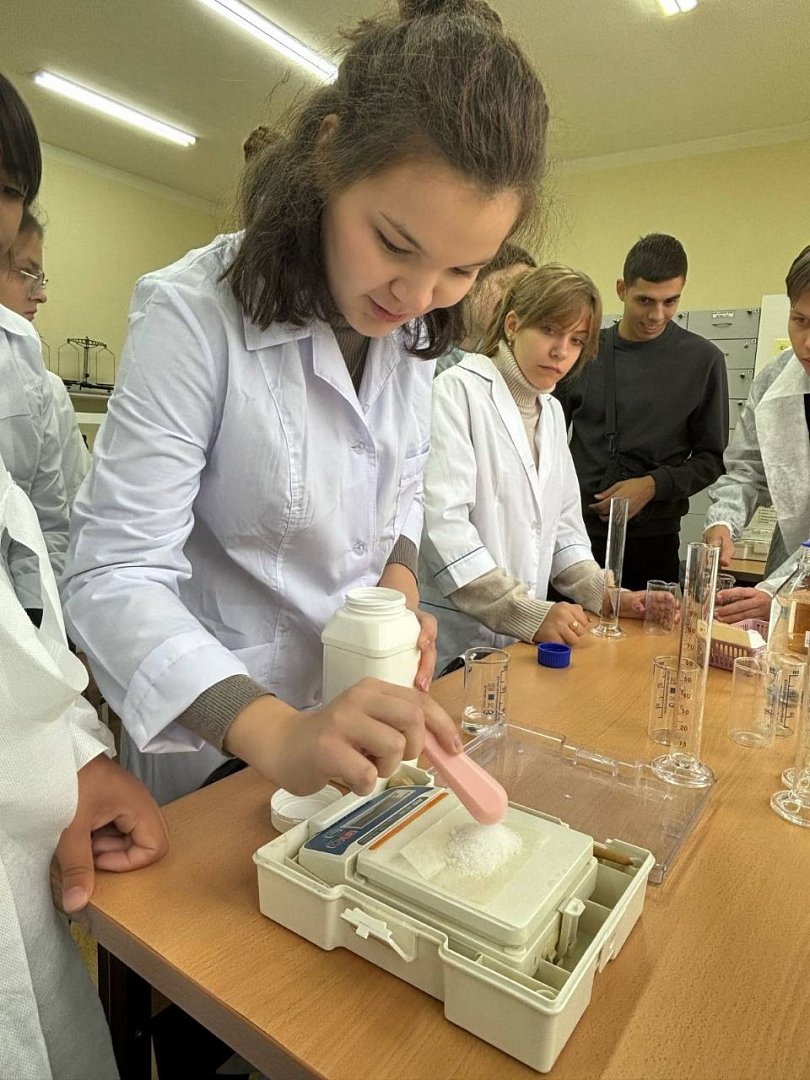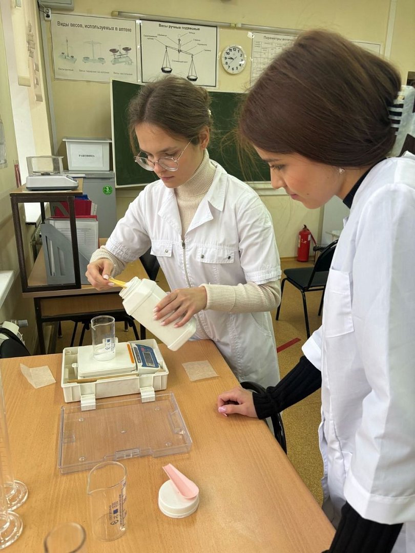 Также мы посетили кафедру фармацевтической технологии и биотехнологии. Нас приветствовала ассистент кафедры Татьяна Ильина. Она провела экскурсию по учебным лабораториям и кабинетам, подробно рассказала о работе провизора. Познакомились с некоторыми технологическими процессами производства лекарственных препаратов. Самой интересной частью встречи стала практическая работа. Ребята самостоятельно приготовили сироп Алтея.