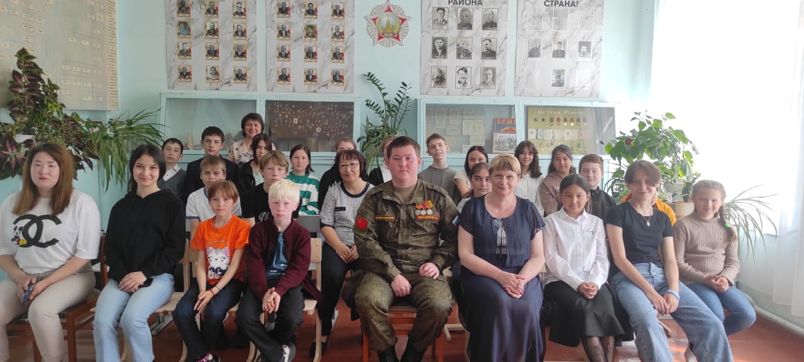 24 мая 2023 года в МОУ «СОШ с.Рефлектор Ершовского района Саратовской области» им.Героя Советского Союза Данукалова А.Ф. в целях гражданско-патриотического воспитания была организована встреча с выпускником школы, участником специальной военной операции на Украине Айсой Абу – Алиевичем Ишмухамбетовым. Об этом нашему изданию рассказала старшая вожатая Светлана Щербакова: