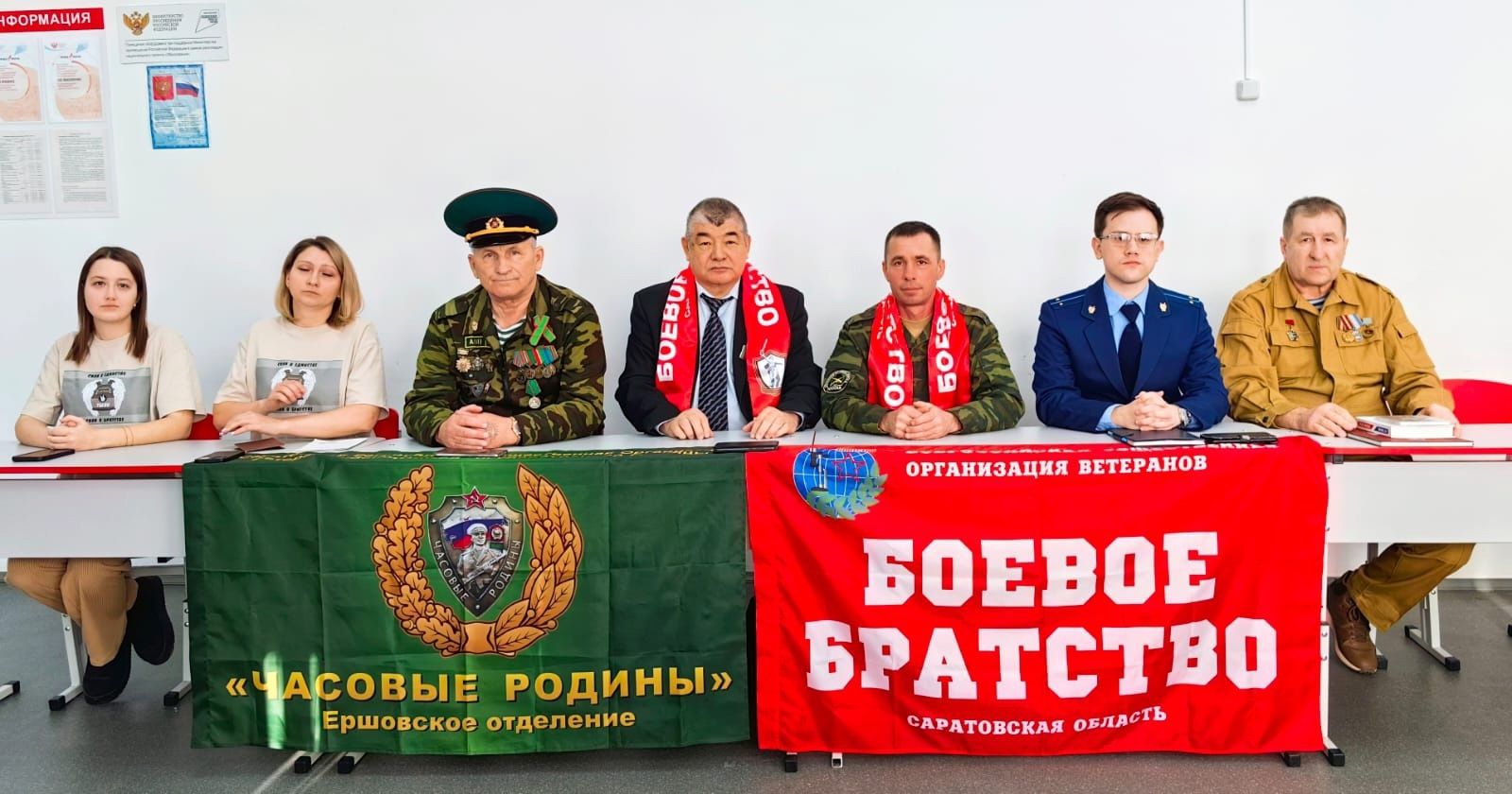 На мероприятии присутствовали представители администрации школы, учителя, отряды учащихся школы «Юнармия», «Юные друзья пограничников», «Юные друзья полиции» и участники линейки «Служу Отечеству», а также почетные гости: руководитель региональной организации «Боевое братство» Сагантай Дусатов и представитель «Боевого братства», участник боевых действий в Чечне Михаил Нартов, представитель общественной организации «Часовые Родины» Сергей Пронюшкин, участник боевых действий в Афганистане Алексей Логач, помощник прокурора Ершовского района Вадим Цуренко, старший инспектор отдела участковых уполномоченных полиции и по делам несовершеннолетних ОМВД России по Ершовскому району, майор полиции Елена Пильгун, волонтеры «Брони в тылу» Екатерина Горбулина и Екатерина Левченко.