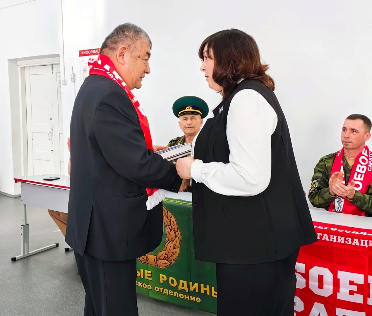 Руководитель региональной организации «Боевое братство» Сагантай Паритович подарил школе книги «Боевое братство» и «Афганский бумеранг», а также диск «Судьба-бродяга». Директор школы Светлана Кибиткина передала волонтерам «Брони в тылу» денежные средства, собранные работниками школы, филиалами и неравнодушными родителями учеников, а также рисунки и письма от учащихся школы для наших бойцов СВО.