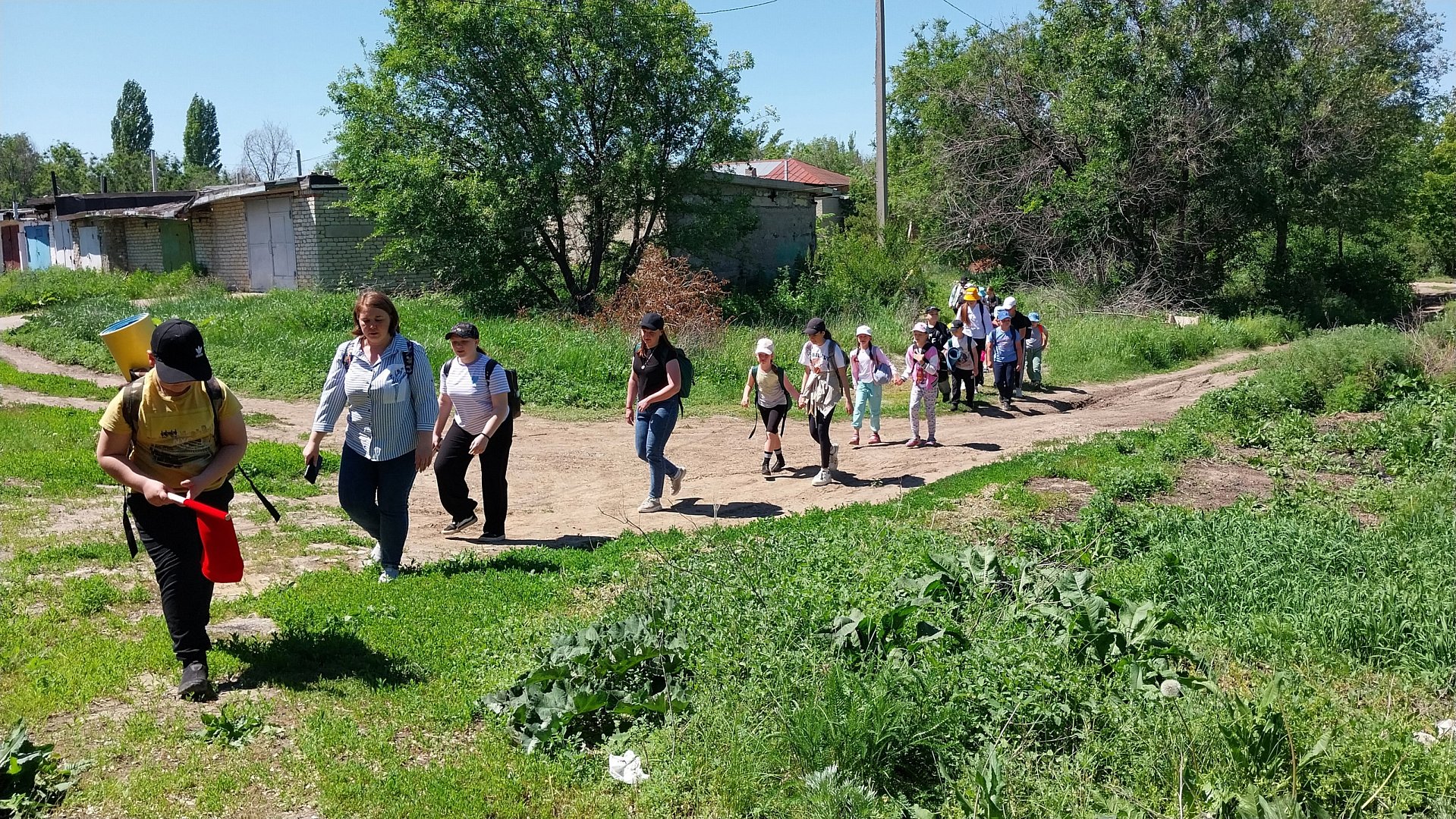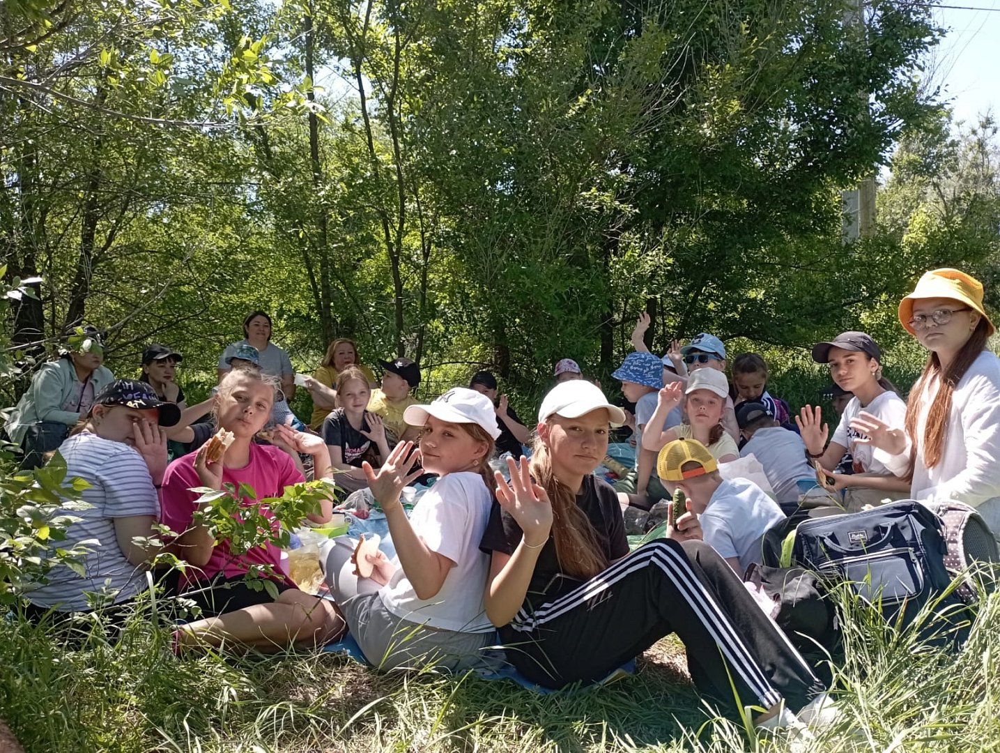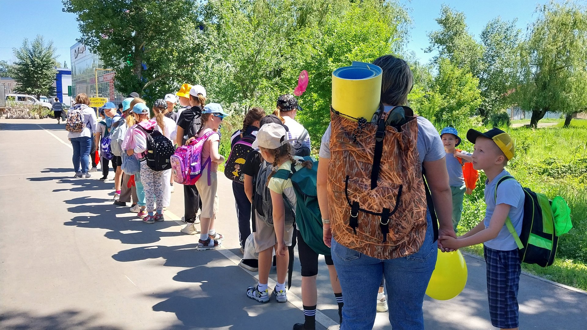 Большим и дружным отрядом с рюкзаками и сачками за плечами ребята выдвинулись на место стоянки.