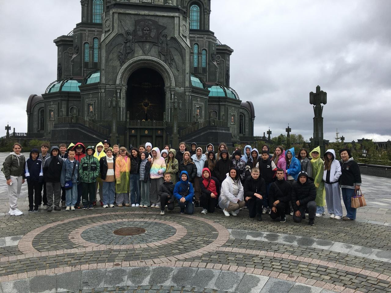 Затем школьники посетили храм Вооружённых Сил России, который поразил их своей красотой и величием. Этот храм был построен в честь Воскресения Христова, посвящен 75-летию Победы в Великой Отечественной войне, а также ратным подвигам русского народа во всех войнах, выпавших на долю нашей страны.