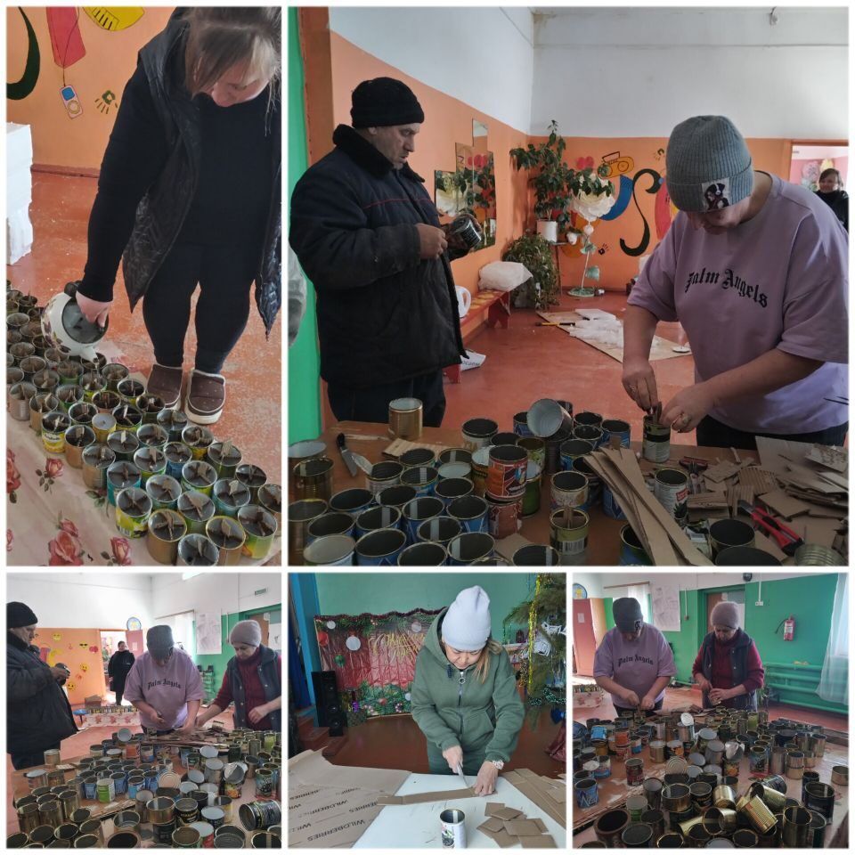 Неравнодушные жители поселка собрали жестяные банки. Самые активные среди односельчан, принявшие участие в изготовлении свечей семьи: М. Денисов и Н. Медведева, Н. Созанская, Ю. Джарлгапова, И. Осьмак.
