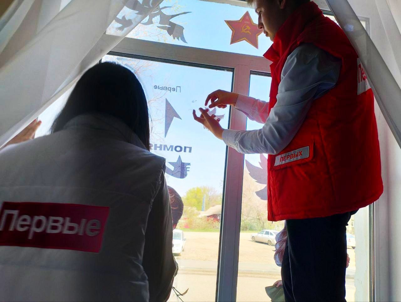 Одни из первых к акции присоединились участники Движения Первых Ершовского района. Особыми наклейками и рисунками, посвященными 9 Мая, они украшают окна школ, домов, а также значимых мест города, таких как районный Дом культуры и центральная библиотека.
